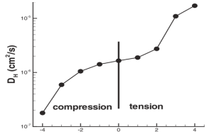 氫原子的擴散率D與應力和溫度相關(guān)。氫原子移動(dòng)性和應力以及溫度的關(guān)系,以及氫原子濃度和溫度的關(guān)系如圖 4所示。
