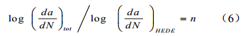 而裂紋生長(cháng)實(shí)際速率與 HEDE的關(guān)系如公式(6)所示: