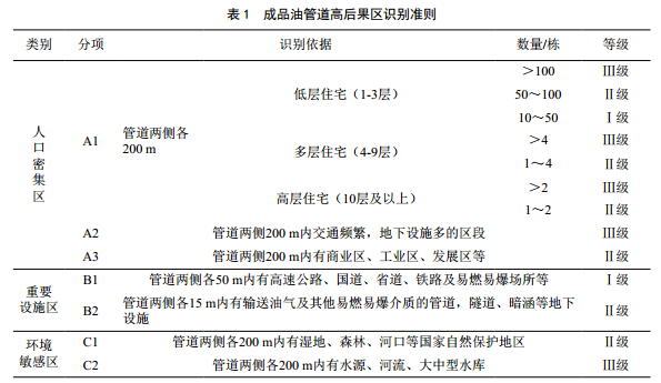 (1)成品油管道高后果區識別準則不僅可以識別高后果區等級,還可以識別高后果區類(lèi)型,綜合其等級與類(lèi)型“對癥下藥”,明確管理重點(diǎn)。