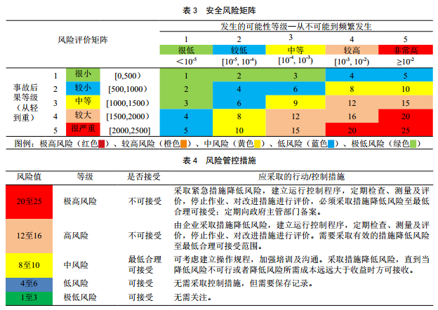 根據風(fēng)險矩陣進(jìn)行風(fēng)險分級,如表 4。根據分級結果,便于實(shí)行風(fēng)險的分級管控。