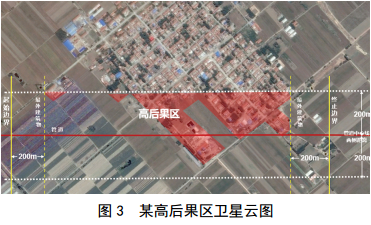 ①高后果區邊界設定為距離最近一幢建筑物外邊緣200 m,如圖 3所示。