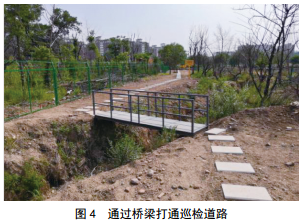 (3)“巡檢系統”透明化。堅持按照“無(wú)盲區”原則設置高后果區巡檢關(guān)鍵點(diǎn),對于有圈隔、圈占的區域應在其內部至少設置一個(gè)關(guān)鍵點(diǎn),對于有施工活動(dòng)的點(diǎn)位必須設置一個(gè)關(guān)鍵點(diǎn)。對于Ⅲ級高后果區內有影響巡線(xiàn)工通行的障礙、無(wú)法沿管道徒步巡檢的,應對障礙物予以清理或設置巡檢通道,同時(shí)在管道上方鋪設50厘米的徒步巡線(xiàn)便道(圖 4)。