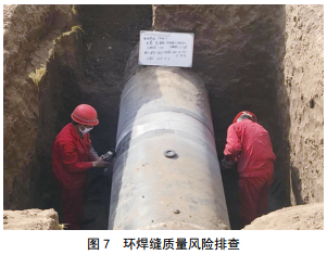 (6)“環(huán)焊縫排查”持續性。嚴格按照環(huán)焊縫排查“三步走”戰略,第一步完成重點(diǎn)管段、焊口排查和處置。第二步完成剩余一般管段、焊口排查和處置。第三步完成抽樣復查焊口和底片的一致性比對。結合前期開(kāi)挖驗證結果,補充開(kāi)挖部分焊口并驗證焊口與底片的一致性(合計抽樣比例達到 1%)。如發(fā)現不一致,加倍抽檢;若加倍后仍發(fā)現不一致,則全部開(kāi)挖復拍(圖 7)。