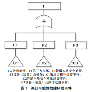 采用故障樹(shù)分析法對管道風(fēng)險因素進(jìn)行識別。在此基礎上,利用下行法及布爾代數化簡(jiǎn)故障樹(shù)(圖 1),求解故障樹(shù)最小割集,得到結構重要度系數的大小,從而獲取影響管道失效的主要影響因素;臼录Y構重要度系數越大,該基本事件對頂事件發(fā)生產(chǎn)生的影響也越大,應采取措施控制這些結構重要度系數較大的基本事件的發(fā)生。