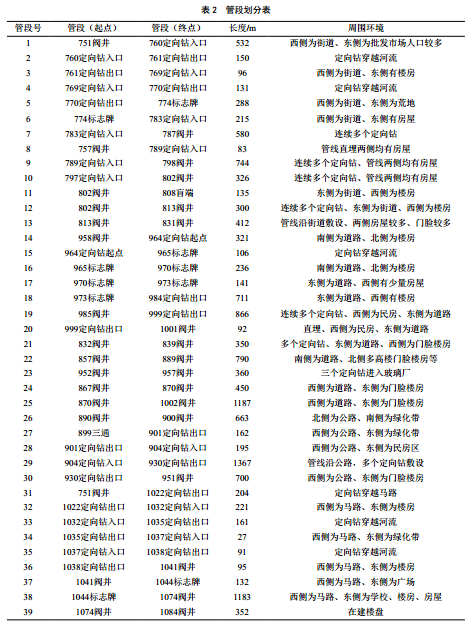 本次評價(jià)以檢測結果、綜合人口密度、環(huán)境狀況、管道規格等劃分管段,結果見(jiàn)表 2。