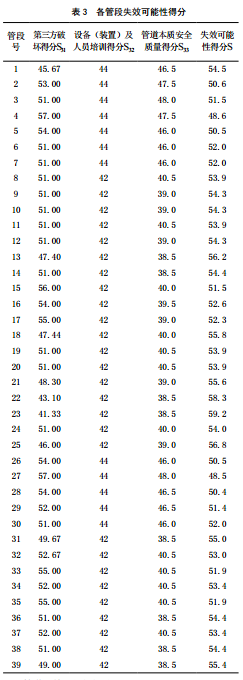 (3)各管段失效可能性確定。在評價(jià)失效可能性上,不同的評價(jià)模型會(huì )有側重點(diǎn)的差異,但通常包括第三方破壞、設備(裝置)及人員操作、本體安全等方面。