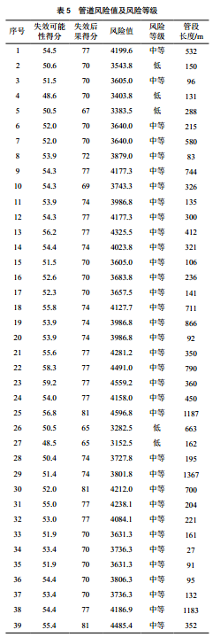 (5)各管段失效風(fēng)險值確定。風(fēng)險值等于失效可能性與失效后果的乘積。