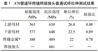 焊縫金屬的屈服強度低于母材的屈服強度,當管線(xiàn)承受軸向載荷的作用時(shí),焊縫金屬將率先屈服并開(kāi)始塑性變形,由于焊縫占管線(xiàn)的長(cháng)度小且焊縫屈服強度低,管線(xiàn)的主要應變集中在焊縫內,在焊縫處發(fā)生應變集中。應變集中不同于應力集中,應力集中所產(chǎn)生的應力值上限為該處材料的屈服強度,其破壞形式主要表現為疲勞源;應變集中處應變值不受材料限制,其破壞形式主要表現為塑性剪切破壞或者脆性斷裂。