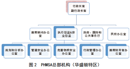 (2)組織機構。 PHMSA由總統任命、參議院確認的行政長(cháng)官領(lǐng)導,高級領(lǐng)導團隊由一名副行政長(cháng)官、首席顧問(wèn)、安全總監和一名主管組成(圖 2)。