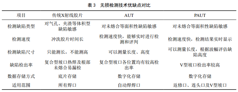 3.3 無(wú)損檢測技術(shù)優(yōu)缺點(diǎn)(表 3)