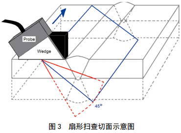(3)檢測中不需要進(jìn)行鋸齒等多維掃查,僅需要 一維掃查即可對焊縫進(jìn)行全面檢測,檢測效率高[4]。
