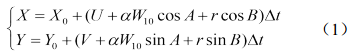 式中α 為風(fēng)拖曳系數, f(θ)為科氏力引起的偏轉角的函數, θ 為偏轉角。