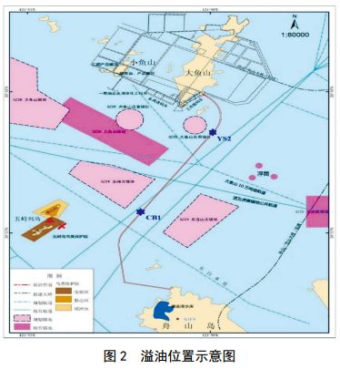馬目油庫—魚(yú)山輸油管道位于航道和錨地的集中區域,且周邊分布的海底管線(xiàn)多,易遭受外部因素如鋪管作業(yè)或拋錨、錨拖曳、錨鏈磨損管道、沉船等對管道造成損傷。管道登陸段南側區域距離沖刷槽很近,路由區最大沖刷幅度約1.0 m~2.5 m,存在懸空斷裂風(fēng)險。管道一旦泄露溢油,在潮流及風(fēng)海流作用下,溢油范圍隨泄漏后時(shí)間增長(cháng)而擴大,將嚴重污染海域及周邊環(huán)境。