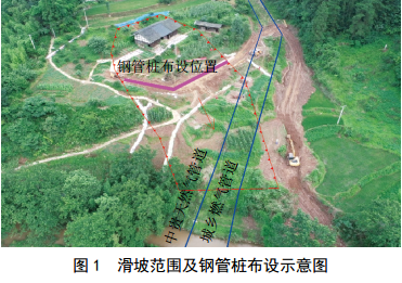 (3)采取鋼管樁支護措施。針對滑坡的穩定狀態(tài)、滑坡周邊場(chǎng)地地形條件以及考慮施工的安全性,對滑坡采取了鋼管樁支護措施,在滑坡中后部設置了兩排鋼管樁,共計86根(圖 1)。