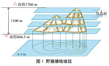 新路由途經(jīng)地段屬典型喀斯特地貌,全長(cháng)42.68 km ,與載入史冊的抗戰公路“24道拐”相鄰,管線(xiàn)總體處于崇山峻嶺之中。石方工程占比高達85%,高陡邊坡共27處,其中5處為特殊困難段,最陡坡度接近72°,例如地面高差1100 m、坡度高達72°的野豬塘陡坡段(圖 1);坡長(cháng)600 m的雙江口陡坡段;坡度45°的興和村高陡坡段等。