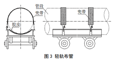 拖船布管。適用于設備布管較困難,坡度相對較短、平緩的地段。