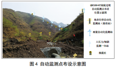 廣泛應用實(shí)時(shí)監測技術(shù)。不穩定性邊坡等重要地段設置地表位移監測設施,監測管道周?chē)馏w變化狀態(tài)。在高陡邊坡、不穩定斜坡等17處高風(fēng)險隱患點(diǎn),共計布設65組管道應變監測截面,使用60套管道地質(zhì)災害一體化野外監測樁,接入“管道沿線(xiàn)地質(zhì)災害監測與預警平臺”,實(shí)現實(shí)時(shí)監測管道應力應變狀態(tài)(圖 4)。