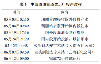 1 中緬原油管道特點(diǎn)和投產(chǎn)過(guò)程