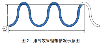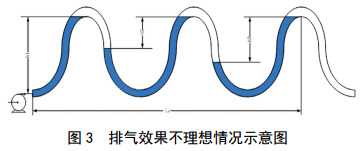 運行中管道排氣效果往往不是理想狀態(tài),經(jīng)常在管道的高點(diǎn)集氣,多重起伏的管道會(huì )在各個(gè)高點(diǎn)上形成氣袋,導致計算得出的摩擦阻力會(huì )大于理論摩擦阻力,氣體積存的越多,實(shí)際摩擦阻力越大,如圖 3和方程(2)所示。