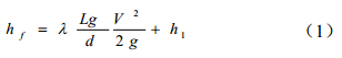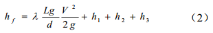 從圖 2可以看出,如果多重起伏管道投水排氣效果非常理想,在此過(guò)程中泵出口的最大阻力應該發(fā)生在水頭翻越靠后的高點(diǎn)時(shí)。其阻力包括沿程摩阻和翻越高點(diǎn)的靜壓力,如方程(1)所示。