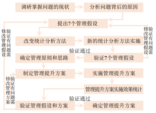 按照表 1分類(lèi),整理匯總分公司2019年2月至11月排查發(fā)現的1556項“低老壞”問(wèn)題,分析得出統計結論,并反向驗證管理假設,確定整治原則和方案,制定整治措施。持續跟蹤記錄整治措施實(shí)施后的相關(guān)數據并統計分析,依據統計分析結果,不斷提升和完善管理假設和整治方案,形成閉環(huán)管理。整治流程分為12個(gè)步驟,如圖 1所示。