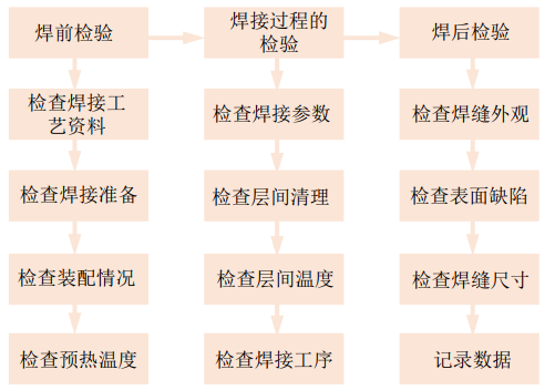 在焊接過(guò)程中進(jìn)行檢驗時(shí),根焊質(zhì)量檢驗非常關(guān)鍵,如發(fā)現點(diǎn)固焊或起焊位置有裂紋必須將裂紋處磨除,目視檢驗徹底磨除后重新焊接,為下層焊道創(chuàng )造良好焊接環(huán)境。其次溫度測量應距焊道50毫米才更有效,杜絕違反操作規程反方向焊接。