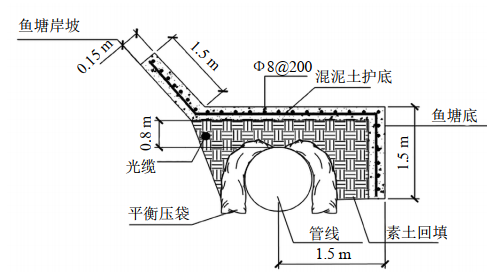 近年來(lái)高速公路的快速發(fā)展,給周邊地形地貌帶來(lái)了較大改變。施工單位為節省運輸及施工成本,就近直接在高速公路周邊開(kāi)挖取土修建路基,形成了一個(gè)個(gè)取土坑。經(jīng)過(guò)長(cháng)時(shí)間雨水積存和地下水滲入以后多形成了魚(yú)塘。管道經(jīng)過(guò)這類(lèi)取土坑,一般采用大開(kāi)挖或穿越方式。取土坑邊坡因為開(kāi)挖和雨水沖刷導致土質(zhì)松軟,邊坡不穩,極易坍塌[1]。造成管道及光纜裸露、懸空風(fēng)險。