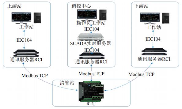 有人管理站場(chǎng)及調控中心均使用阿克泰姆 ViewStar ICS SCADA 軟件進(jìn)行數據采集和監控,使用前置通訊服務(wù)器 RCI 實(shí)現數據通訊和協(xié)議轉換,數據流向如圖 2所示。