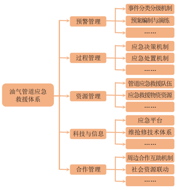 六是建立應急救援體系。從健全應急準備,完善預案,加強預案演練,完善應急物資儲備和調動(dòng)機制等方面,建立系統的油氣管道應急救援體系(圖 3)。
