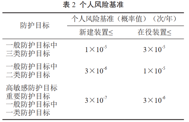 個(gè)人風(fēng)險表示由于事故而導致特定防護目標的個(gè)人死亡概率,詳見(jiàn)表 2。