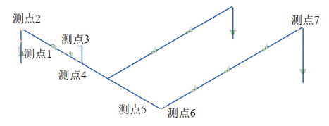 測點(diǎn)1到測點(diǎn)2,測點(diǎn)5到測點(diǎn)6兩廠(chǎng)管道應力變化趨勢相同,測點(diǎn)3、4、5之間應力變化規律不明顯,因其均位于直管段,沉降對該區域影響不大。