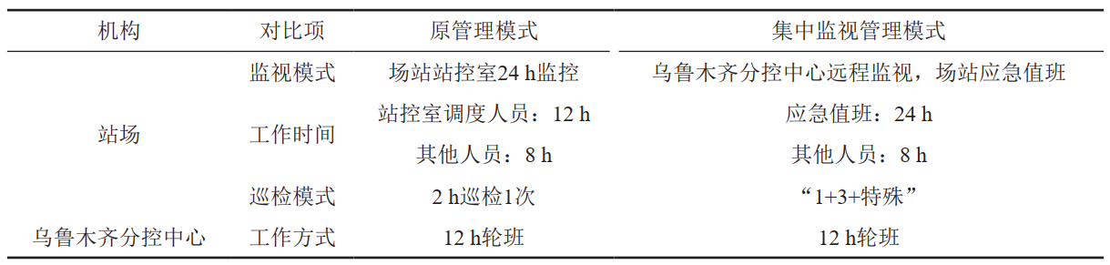 表 2 原管理模式與集中監視管理模式特點(diǎn)對比