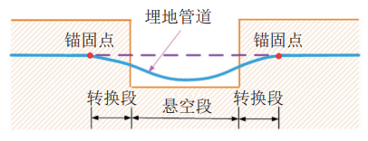 a)埋地管道懸空變形示意圖