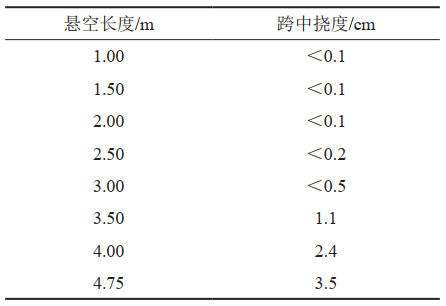 1 懸空長(cháng)度與跨中撓度關(guān)系