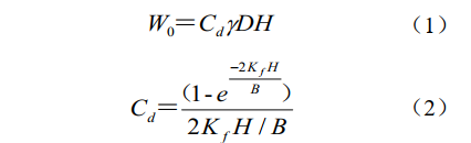 式中:γ為土層重度,N/m3;B為溝槽寬度,m;W0為單位管長(cháng)的豎向永久荷載,N/m;Cd為土壓力集中系數;D為管徑,m;H為管頂覆土厚度,m;Kf為土壤吸附作用強度系數,砂土及腐殖土(干燥)0.192,砂土、腐殖土(濕的和飽和的硬黏土)0.165,塑性黏土0.148,流動(dòng)性黏土0.132。表 1取砂土及腐殖土(干燥)Kf為0.192進(jìn)行計算。
