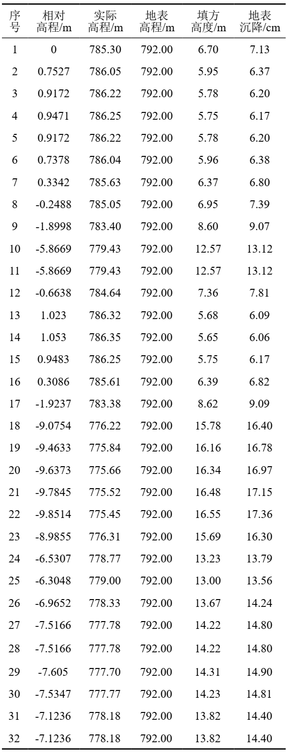 4 管道關(guān)鍵節點(diǎn)土體沉降值列表