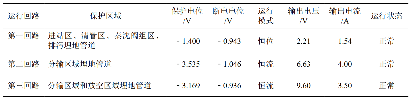 (1)通過(guò)對秦皇島站內區域恒電位儀、10個(gè)電位測試點(diǎn)數據自動(dòng)上傳到管道陰極保護管理系統,可遠程對站場(chǎng)區域陰極保護系統進(jìn)行調整。