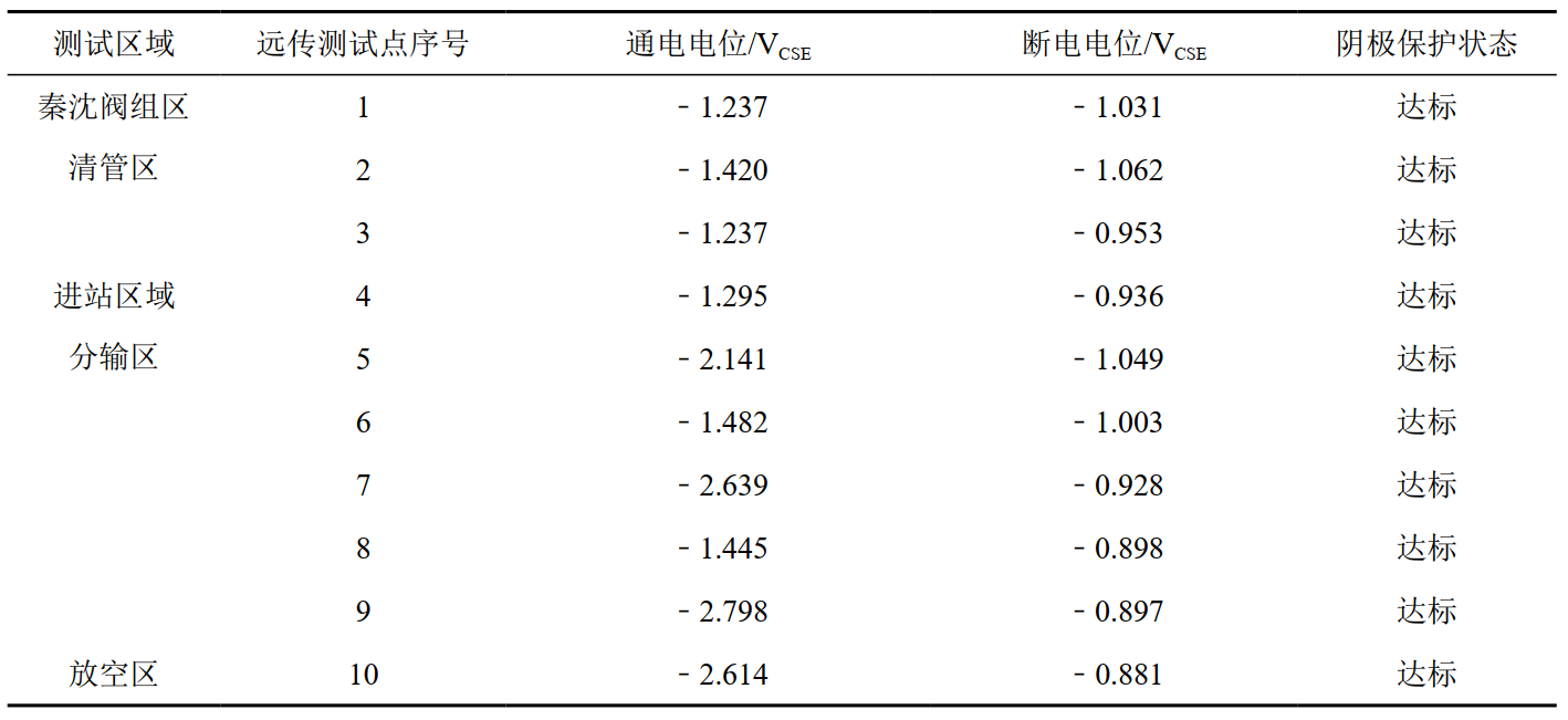 表 2 區域陰保測試點(diǎn)電位記錄表