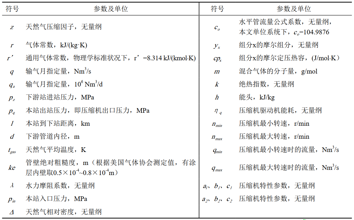 (1)基礎參數。①管網(wǎng)系統信息:壓氣站輸氣指定量(調度中心指令),壓縮機進(jìn)口壓力(由上游來(lái)氣壓力決定),下游站進(jìn)口壓力(調度中心指令),到下游站距離,下游管道管材、直徑、壁厚、粗糙度,地溫;②設備信息:壓縮機特性,驅動(dòng)機效率。