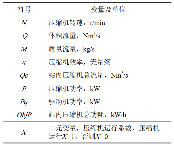 (2)決策變量。①壓縮機運行決策:不同時(shí)期機組運行方案(哪幾臺壓縮機運行,每臺壓縮機的轉速、流量等);②設備能耗:不同時(shí)期壓縮機組驅動(dòng)機能耗。