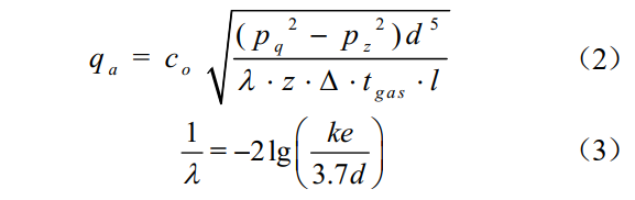 根據假設,本壓氣站到下游站的管道為水平管道,水平管道水力計算公式及水力摩阻系數計算公式分別見(jiàn)式(2)、式(3):