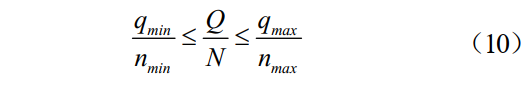 壓縮機轉速在一定范圍內,即nmin≤N≤nmax,喘振和阻塞約束見(jiàn)式(10):