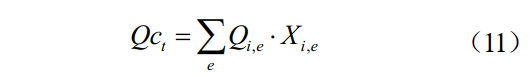 壓縮機總輸氣量等于輸氣指定量,即Qct=qt,由于所有壓縮機并聯(lián),根據能量守恒定律,壓縮機總輸氣量為每臺壓縮機輸氣量之和,見(jiàn)式(11):