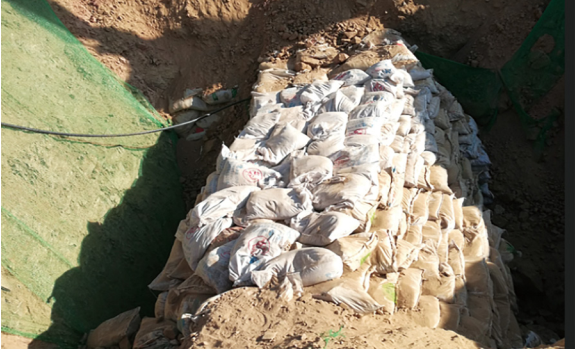 圖 2 管道應力監測及沙袋穩管措施