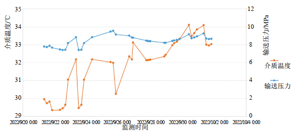 3 上游閥室輸送壓力和介質(zhì)溫度變動(dòng)關(guān)系