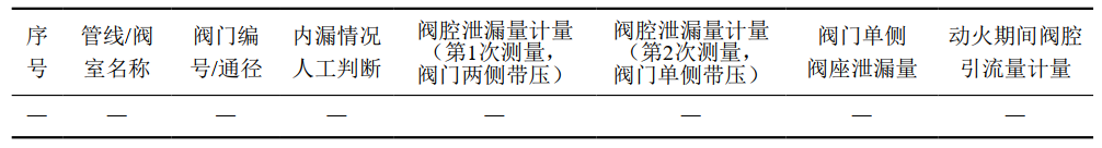 表 1 干線(xiàn)球閥內漏檢查表示例