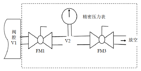 帶泄放口球閥,可在泄放口安裝壓力表觀(guān)察閥腔壓力上升速率或閥腔壓差來(lái)判斷閥門(mén)是否內漏及計算泄漏量。根據理想氣體狀態(tài)方程,可計算出閥腔氣體在標準狀態(tài)下的體積V0(溫度影響可忽略):