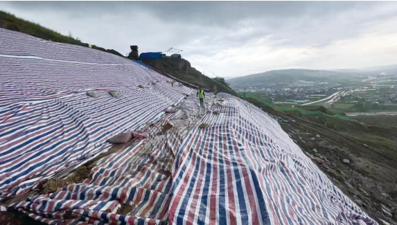 (5)夯填裂縫+防雨覆蓋(圖 5)。為預防滑坡,對滑坡后緣及坡體上的裂縫使用塑料布覆蓋,防止雨水滲入坡體內進(jìn)一步加劇滑坡。