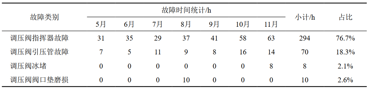 根據表 1可以看出,調壓閥指揮器故障及調壓閥引壓管故障是調壓閥故障的兩個(gè)主要方面。