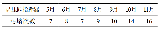 (3)調壓閥指揮器污堵情況。5—9月每月7~10次,10—11月每月14~16次(表 4)。